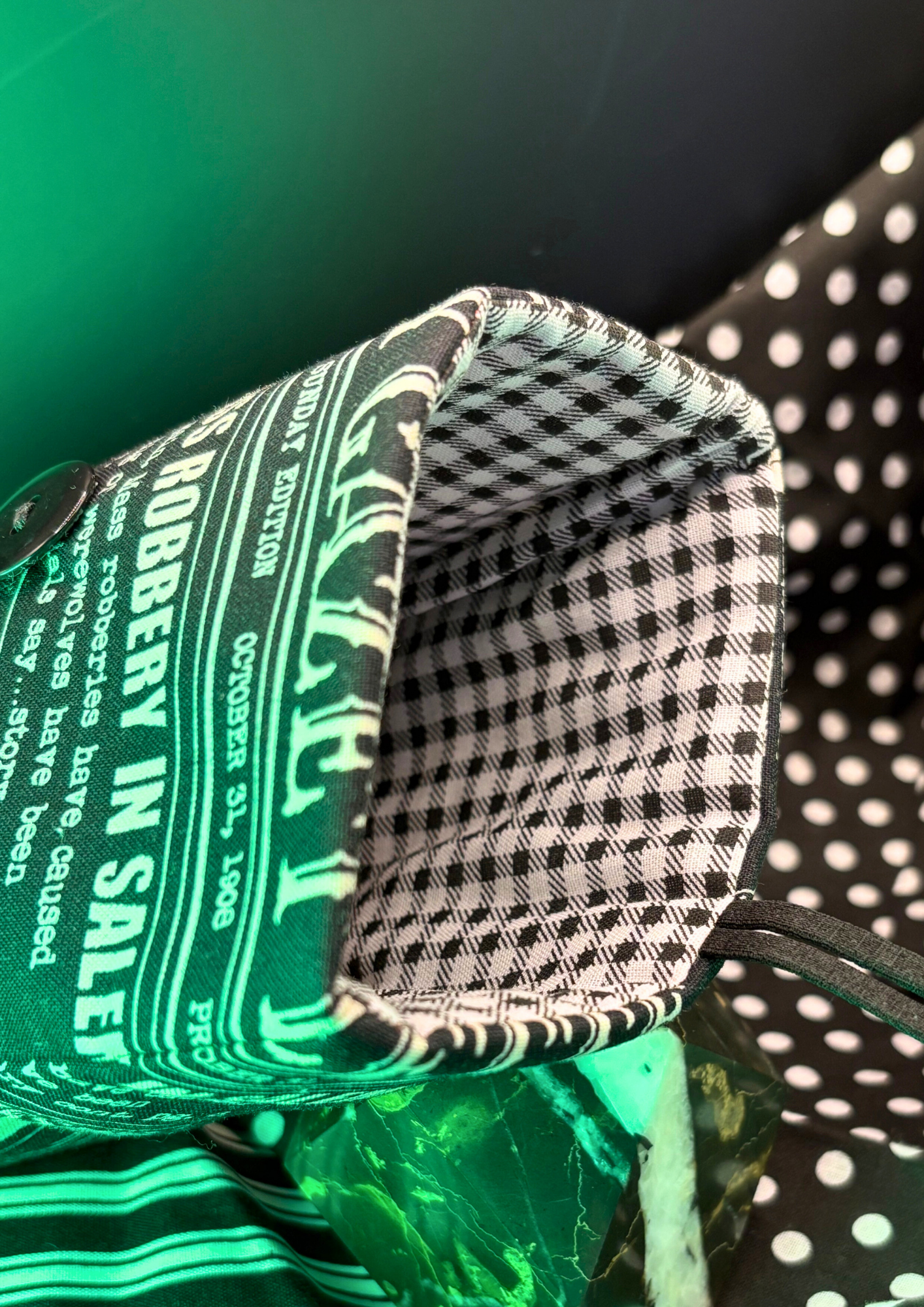 Celebrate the season with this Halloween-inspired sleeve, featuring a seasonal newspaper-print fabric. With a black button, black elastic, and black and white tartan interior, it’s ready to cradle your device in spooky style.